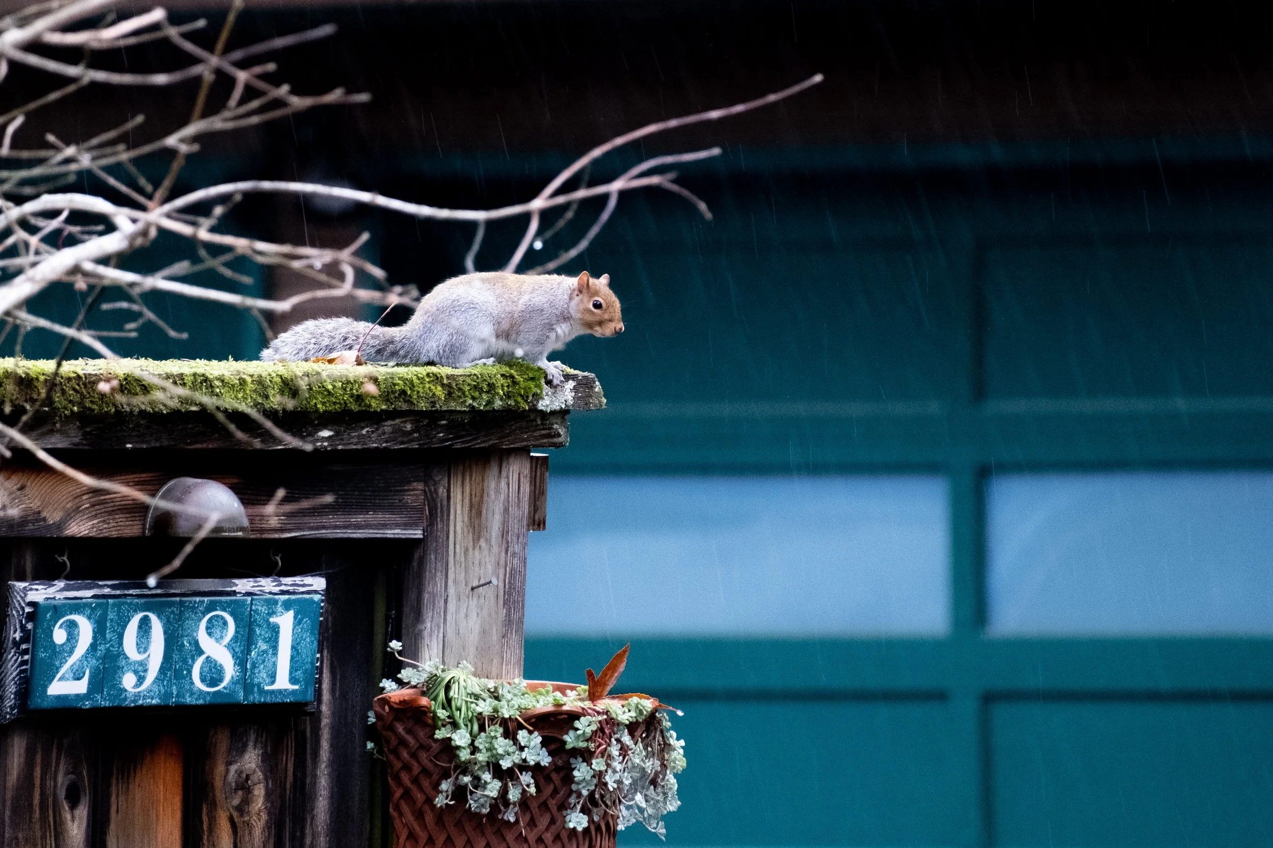 It was a wet one today, but I went out for a short walk through a neighborhood near my apartment. Saw this squirrel running over someone’s fence and managed to get a shot before it scampered away.